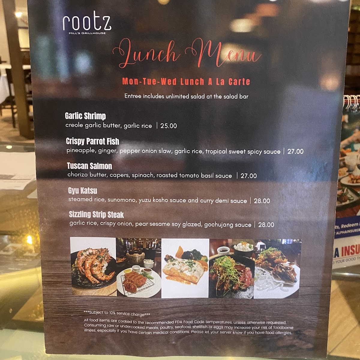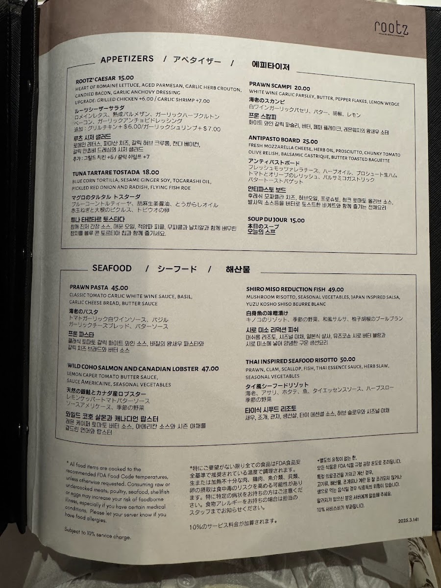 Welcome to Rootz Hill's Grillhouse, a culinary gem nestled in the Guam Plaza Resort and Spa. This inviting restaurant showcases a delightful selection of dishes, spanning from succulent steaks to fresh seafood offerings. The menu may be small, but it boasts a variety of expertly crafted meals designed to satisfy discerning palates.